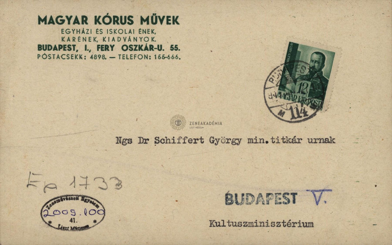 - Bárdos Lajos levele Schiffert Györgyhöz