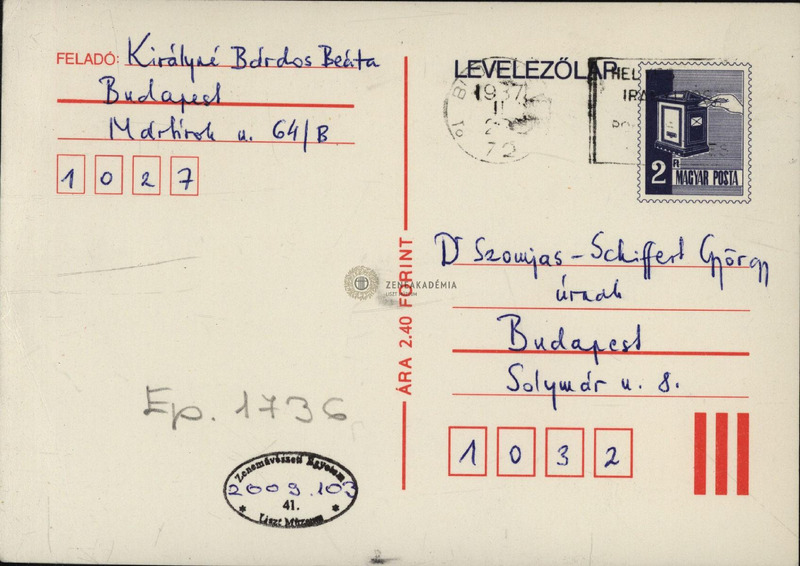 Királyné Bárdos Beáta levele Szomjas-Schiffert Györgyhöz