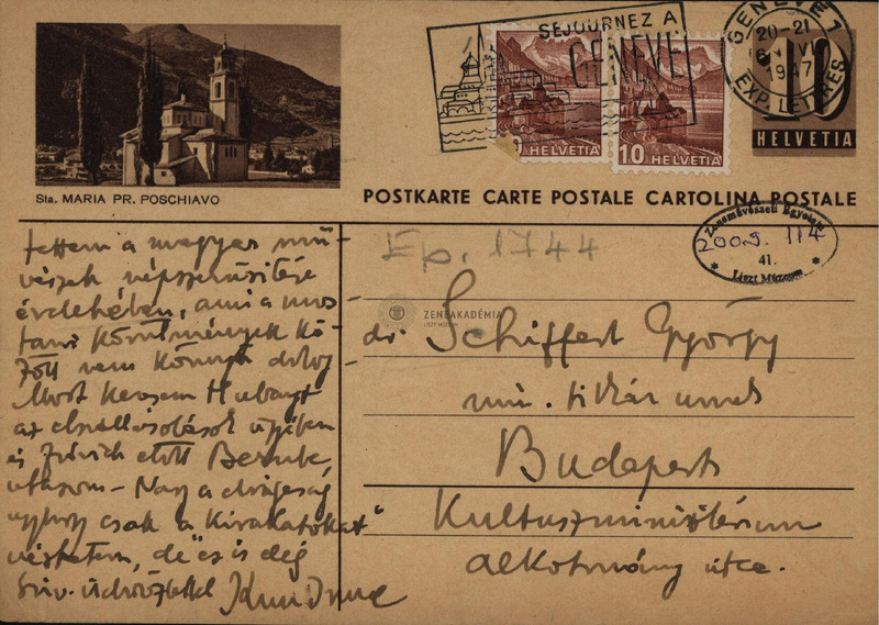 Zürichbe sikerült cseremeghívást kieszközölnie a zürichi Tonhalle Orchesterrel; sikeresen menedzselte a magyar zenészeket, ami jelenleg nem könnyű. Felkereste Hubayt szállás ügyében. Megemlíti a drágaságot.
