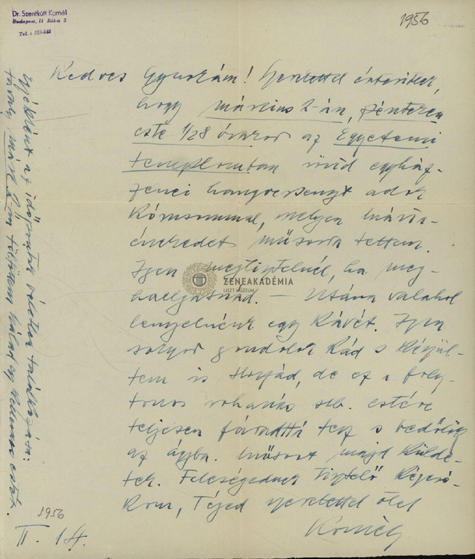Szentkúti Kornél levele Szomjas-Schiffert Györgyhöz