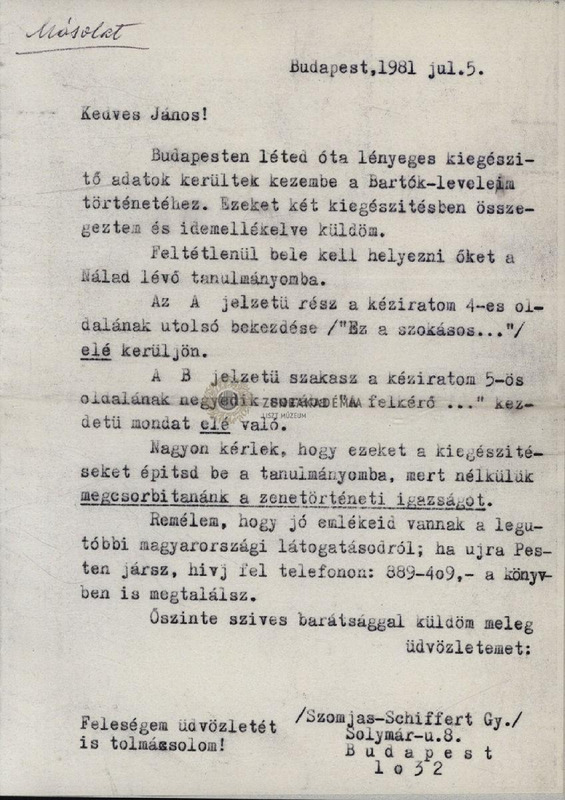 - Szomjas-Schiffert György levele Gergely Jánoshoz