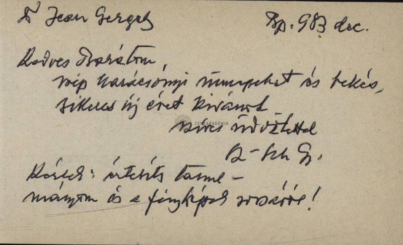 - Szomjas-Schiffert György üdvözlőlapja Gergely Jánoshoz