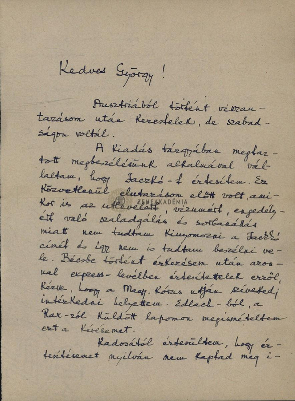 Viski János levele Szomjas-Schiffert Györgyhöz