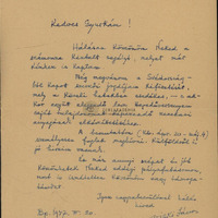 Viski János levele Szomjas-Schiffert Györgyhöz