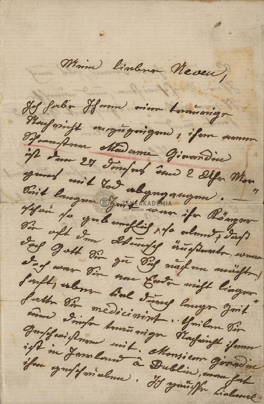 Madame Girondine haláláról értesíti. A levél mellett a boríték is megőrzésre került.