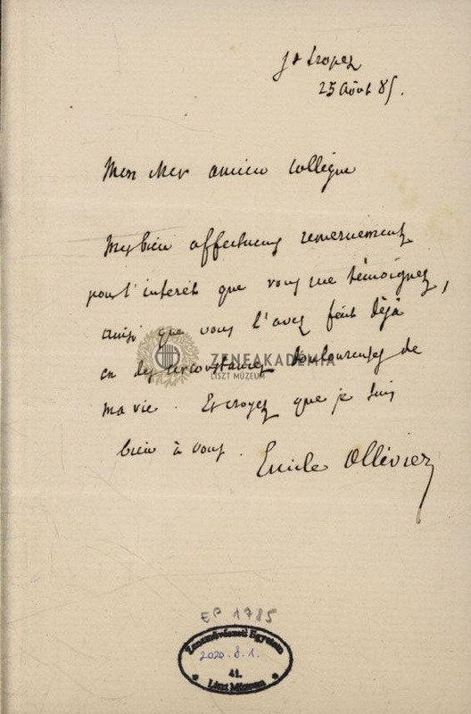 - "Mon Cher ancien Coll?gue" megszólítással. Köszöni a nehéz időszakban feléje tanúsított figyelmességet.