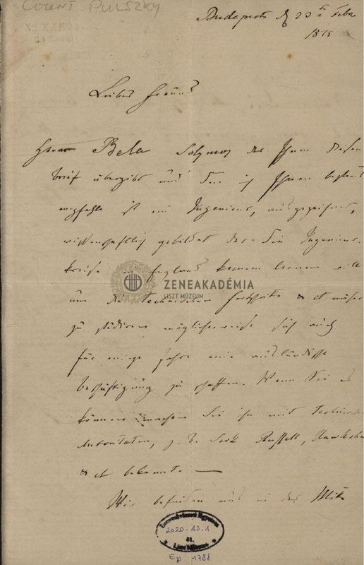 Pulszky Ferenc német nyelvű eredeti levele Liszt Ferenchez