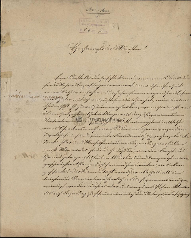 - Liszt születésnapjára írt levél a vezetőség, tanárok aláírásával. "Hochverehrter Meister!" megszólítással.
