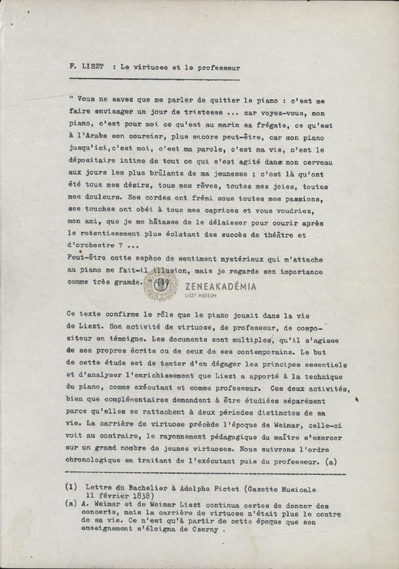 - Pierre Beutter: F. Liszt. Le virtuose et le professeur