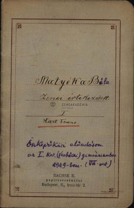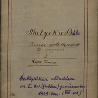 A borítólapon: "Önképzőköri előadásom az I. ker. (Verbőczi) gimnáziumban 1909-ben. (VII. oszt.)"