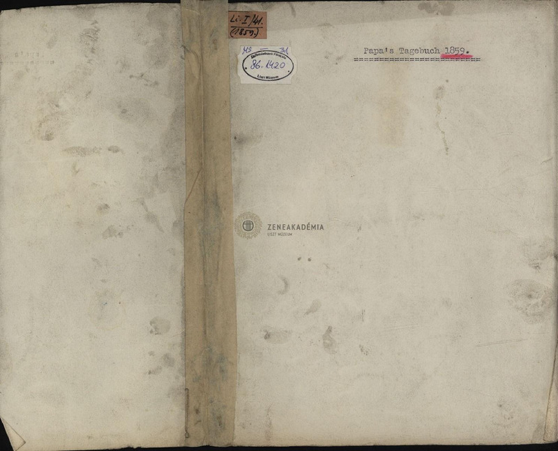 - Géppel írt felirat: "Papas Tagebuch 1859." Barna tintával írt napló, kék és piros ceruzás aláhúzásokkal.