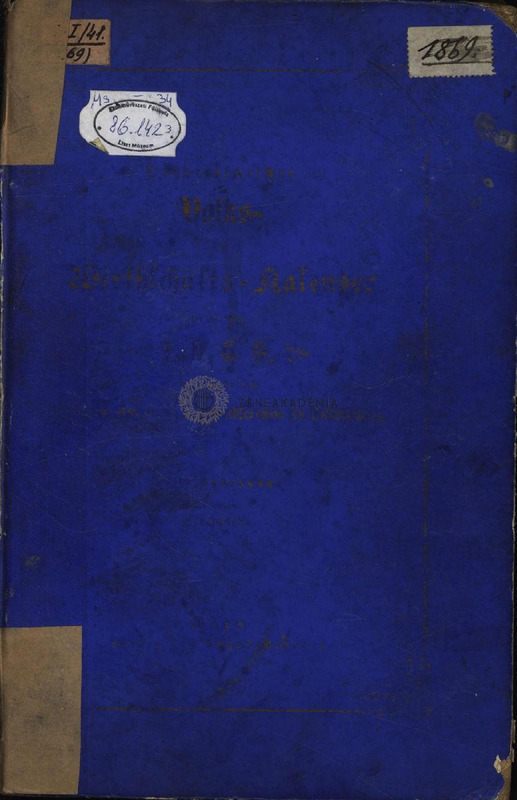 "Österreichischer Volks- und Wirtschafts-Kalender für das Jahr 1869." Néhol a lapok közé barna tintával írott kézírásos lapok betéve.
