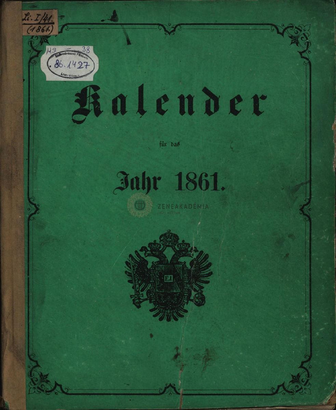 - "Neuer Krakauer auf Wien Berechneter auf das Jahr nach der Geburt Jesu Christi 1861." Néhol tintával írt kézírásos lapok a kalendárium lapjai közé téve.