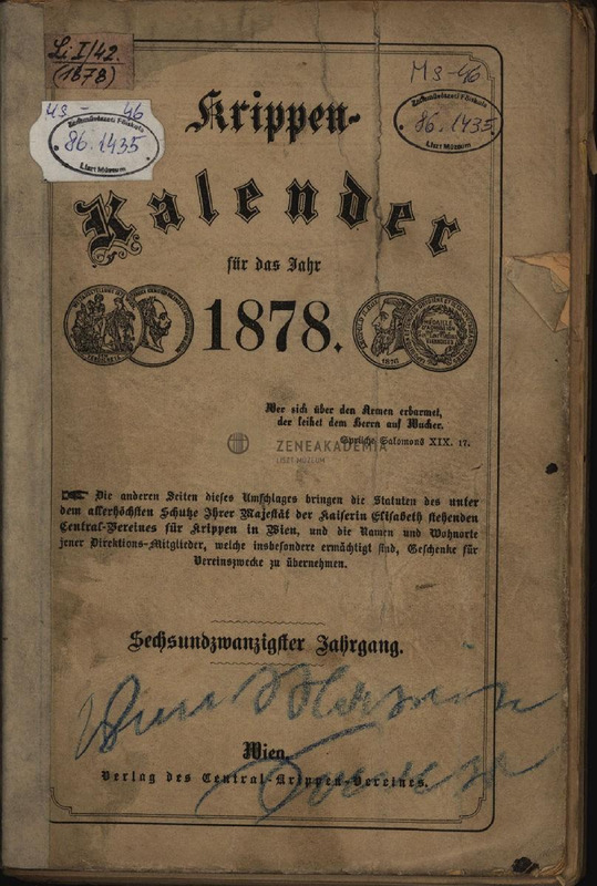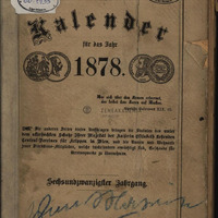 "Krippen-Kalender für 1878. Jahrbuch für Frauen und Mütter." Több helyen tintával kézzel írt oldalak. Borítólapon kék ceruzás írás.