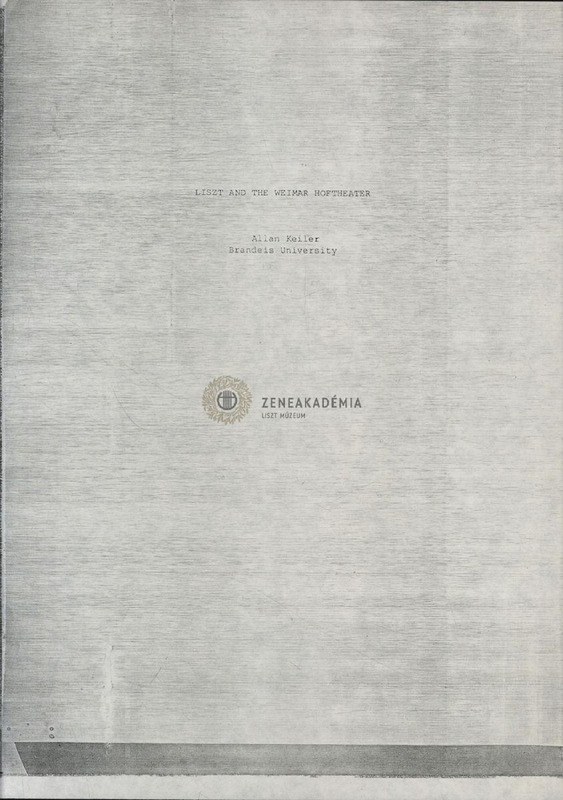 Allan Keiler: "Liszt and the Weimar Hoftheater, 1987."