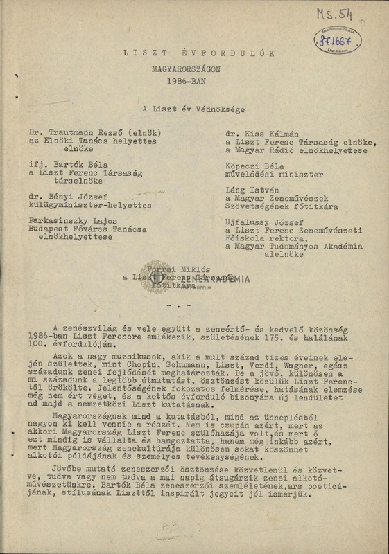 Forrai Miklós: Liszt évfordulók, 1986
