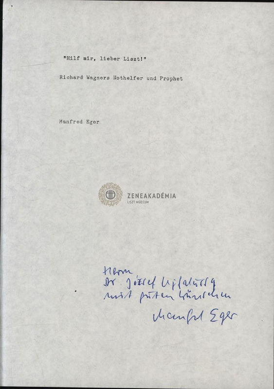 "Hilf mir, lieber Liszt. Richard Wagners othelfer und Prophet". A Richard Wagner Múzeum küldeménye Ujfalussy Józsefnek.