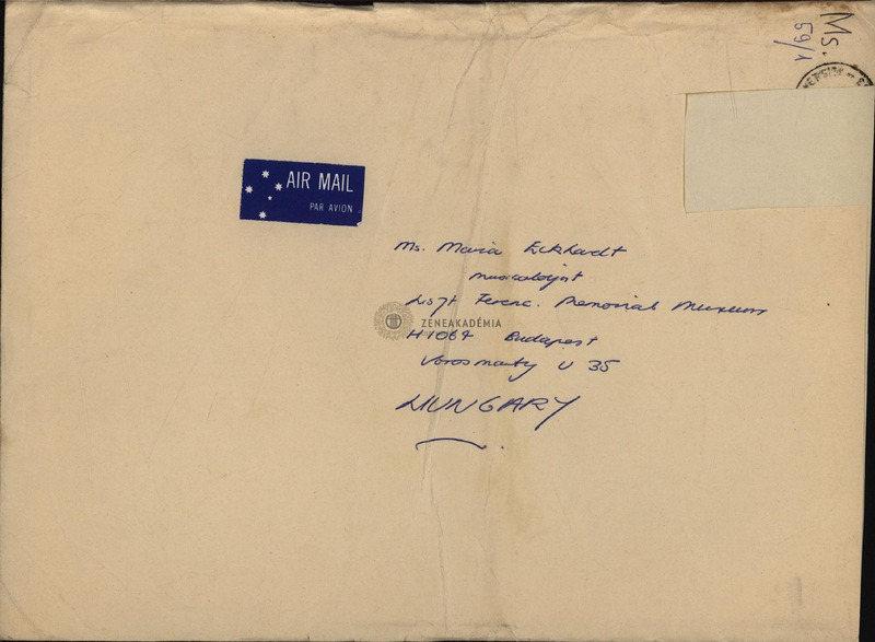 J. G. OShea fénymásolt tanulmánya Liszt utolsó éveinek betegségéről. Eckhardt Máriának címzett borítékban.