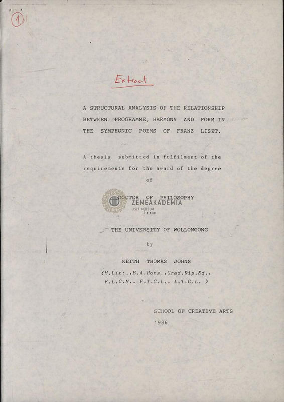 a) "A structural analysis of the relationship between programme, harmony and form in the symphonic poems of Franz Liszt" - dolgozat kivonata (14-20, 295-304 o.)b) "The role of Franz Liszts early works for piano and orchestra in the social economical life of the time." + mellékletek