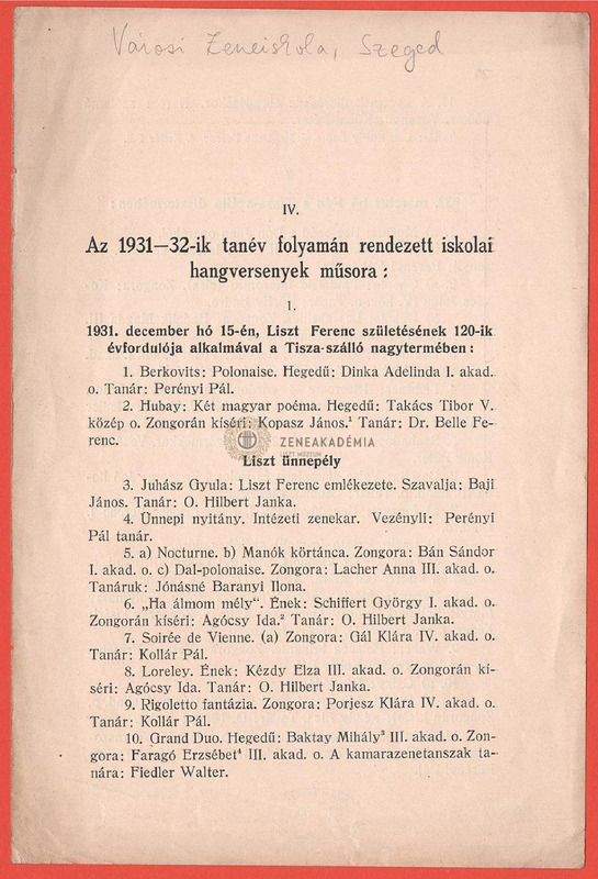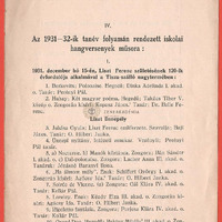 A Szeged-városi zeneiskola hangversenyei az 1931/32-es tanévben.
