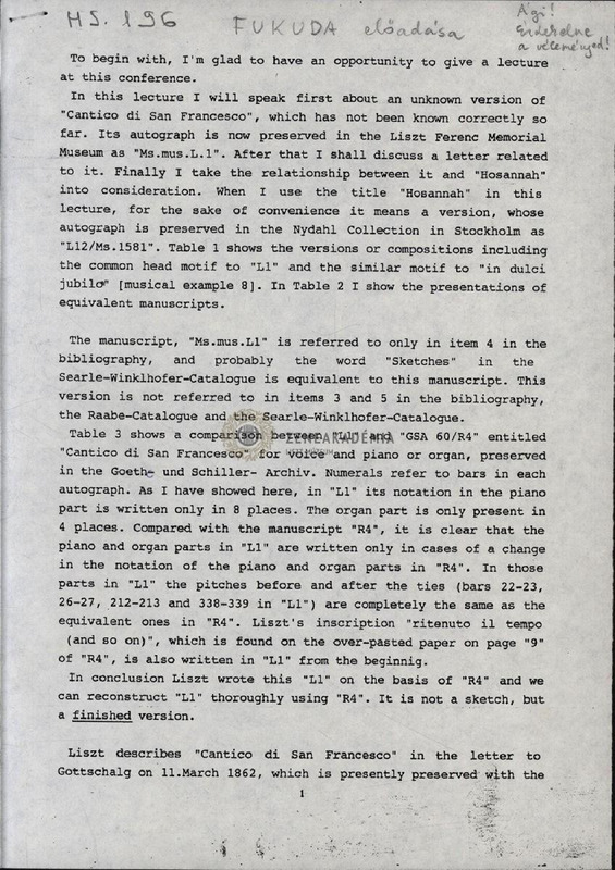 - Wataru Fukuda tanulmányai Liszt "Cantico del Sol" H-Bl kéziratáról (Ms mus L1)