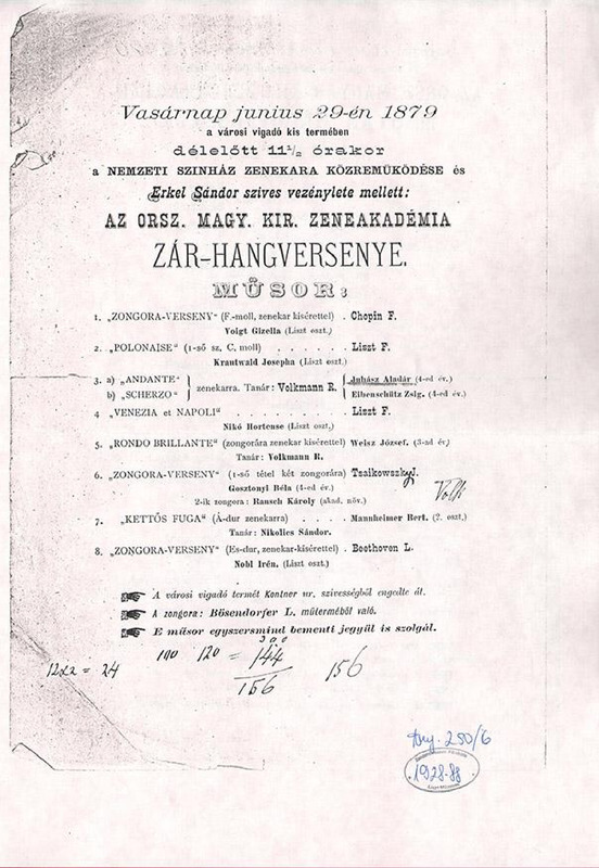 Műsor: Chopin, Liszt, Csajkovszkij, Beethoven és Liszt művei (vez. Erkel Sándor, közreműködnek a Zeneakadémia diákjai).