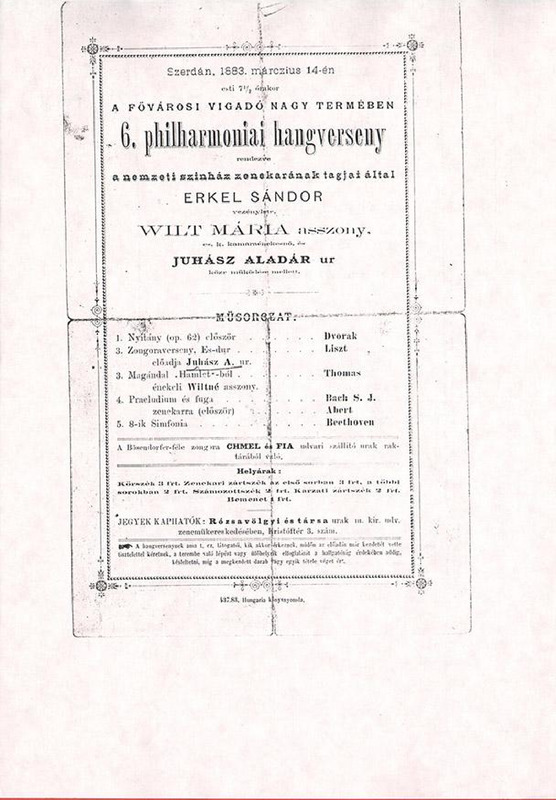Műsor: Dvorák, Thomas, Bach, Beethoven művei és Liszt: Esz-dúr zongoraverseny (vez. Erkel Sándor, zg. Juhász Aladár)