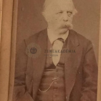 - Az idős művész jobbra fordul. Zakója alatt mellényt és csokornyakkendőt visel.