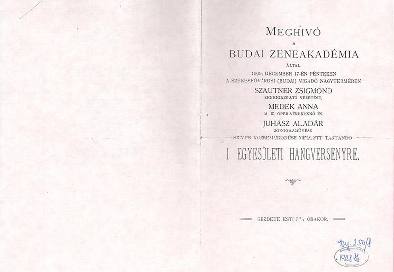 Meghívó a Budai Zeneakadémia hangversenyére.
