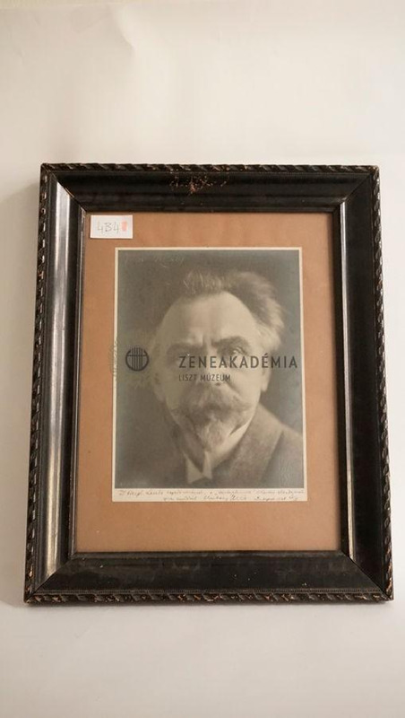 Az idős művész kabátot visel. A fénykép alján sajátkezű ajánlás: Dr. Heigl László hegedűművésznek, a "Csárda jelenetek" sikeres előadójának szíves emlékül Hubay Jenő. Budapest 1928 25/II.