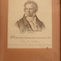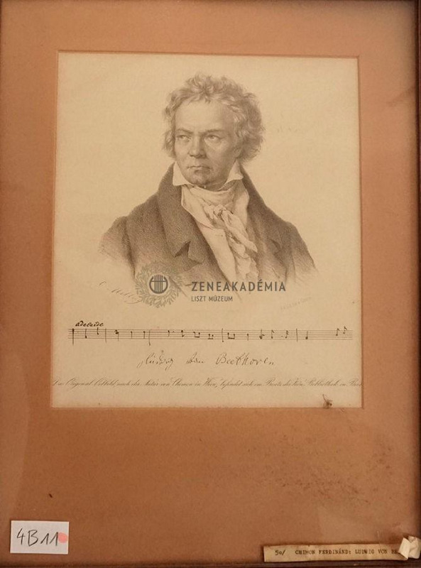 Ludwig van Beethoven mellképe szemből. Alatta az Adelaide című dalból egy sor kotta. Alatta Beethoven saját kezű aláírása. Harmadik sorban németül: Das Original Oelbild, nach der Natur von Chimon in Wien, befindet sich im Besitz der Kőn. Bibliothek in Berlin.