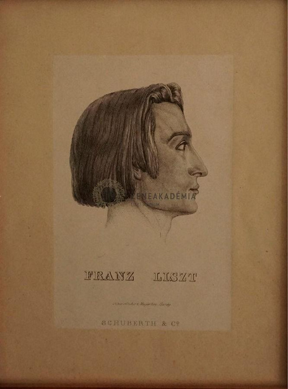 Franz Liszt fiatal kori képe félprofilból. Legalul: Schuberth & Co