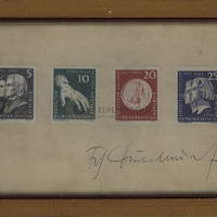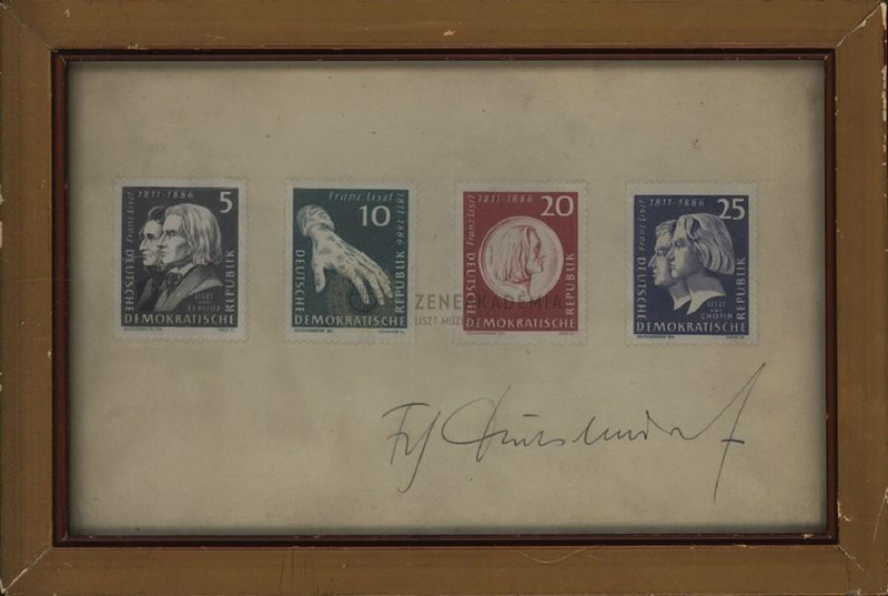 Keretben, évszám nélkül. Liszt und Berlioz, 5 (Pf.); Liszt balkeze, 10 (Pf); Rietschel Liszt-medaillonja 20 (Pf.); Liszt und Chopin 25 (Pf). Valamennyi szignálva: ""Deutschendorf Del. Sachs SC."" Deutsche Demokratische Republik.