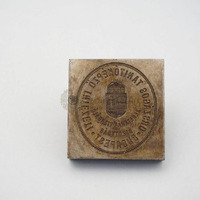 Alacsony téglatest. Ovális alakban felirat: ""Országos Tanítóképző Intézeti Zenetanár Vizsgáló Bizottság. Budapest"". Évszám nélkül.