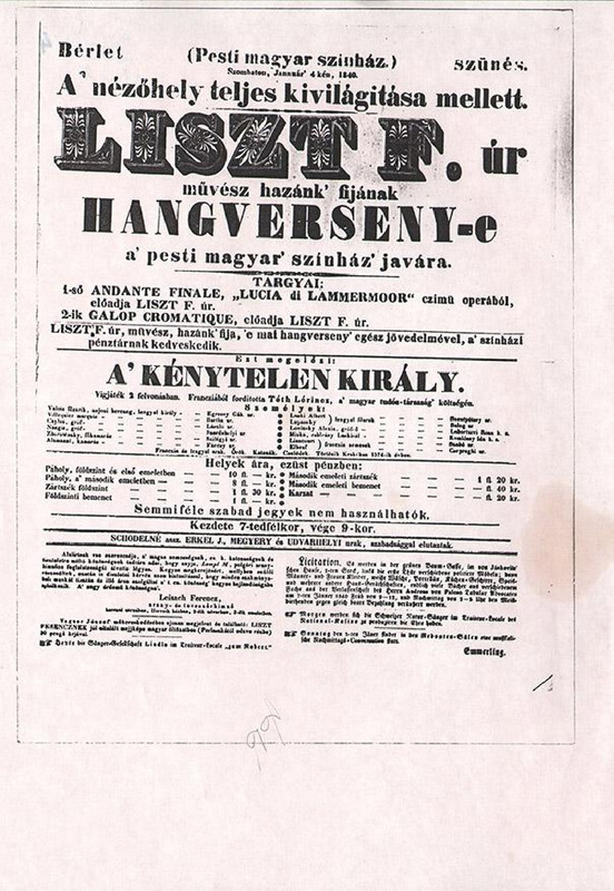 Liszt koncertje a pesti magyar színház javára, előtte színházi előadás.