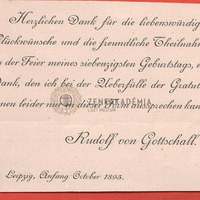 Rudolf von Gottschall ny. köszönete a 70. születésnapjára küldött jókívánságokért.