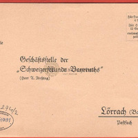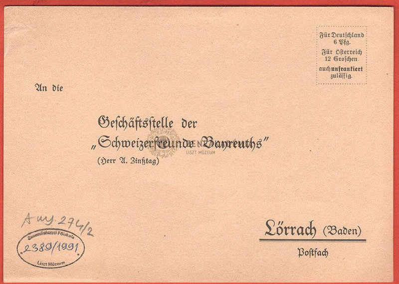 A "Geschäftstelle der Scweizerfreunde Bayreuths" által A. Zinßtag-nak küldött kérdőív.