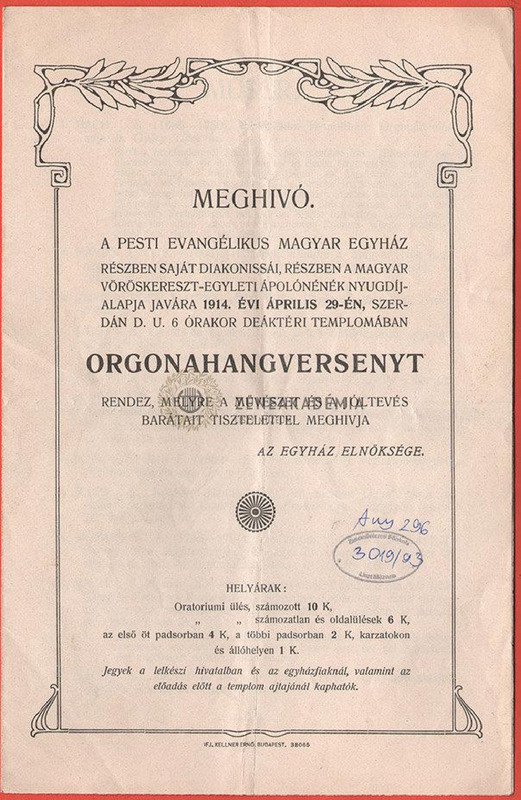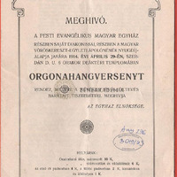 Meghívó a Pesti Evangélikus Magyar Egyház által szervezett jótékonysági orgonahangversyenyre.