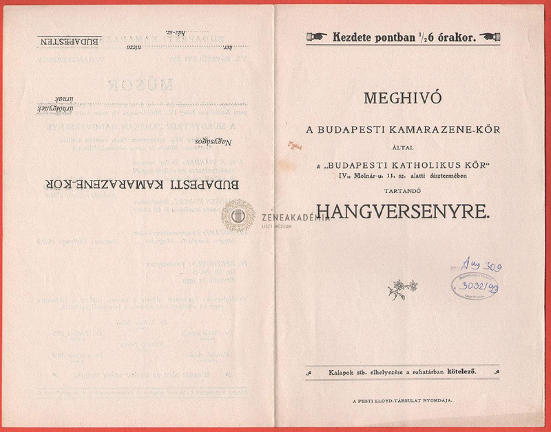Meghívó a Budapesti Kamarazene-Kör hangversenyére.