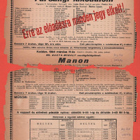 Az Operaház Poldini: Farsangi lakodalom és Massenet: Manon előadásának plakátja (az előbbire minden jegy elkelt).
