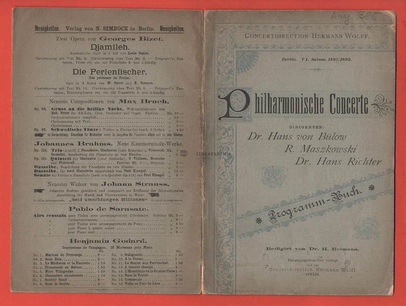 Filharmonikus koncertek Berlinben az 1892/93-as évadban.