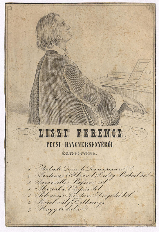 Értesítés Liszt pécsi hangversenyeiről.