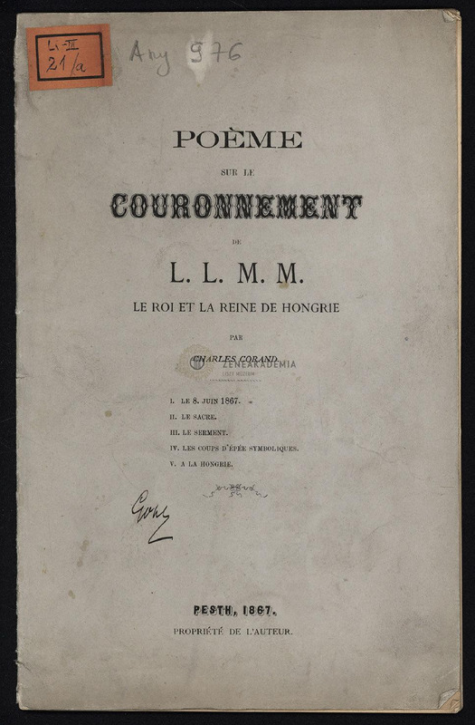 Charles Corand: Po?me sur la Couronnement. Francia nyelvű alkalmi költemény Ferenc József koronázásáról.