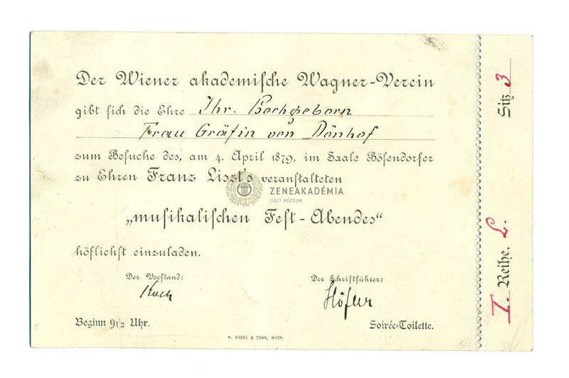 - A Wiener Wagner-Verein meghívója Liszt-estélyre.
