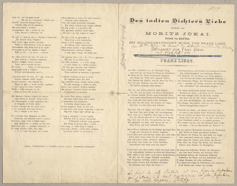 - „Des todten Dichters Liebe” Liszt bejegyzéseivel.