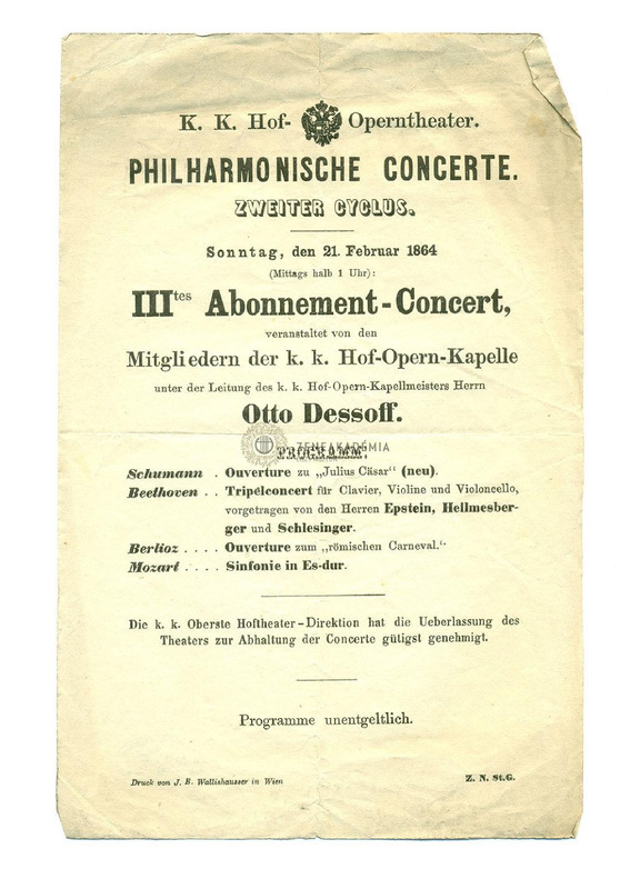Műsor: Schumann, Beethoven, Berlioz és Mozart művei. (Közreműködnek a K.K. Hof-Opern-Kapelle tagjai, vez. Otto Dessoff).