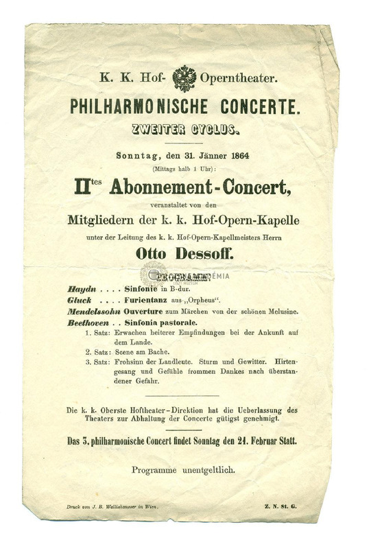 Műsor: Haydn, Gluck, Mendelssohn és Beethoven művei. (Közreműködnek a K.K. Hof-Opern-Kapelle tagjai, vez. Otto Dessoff).
