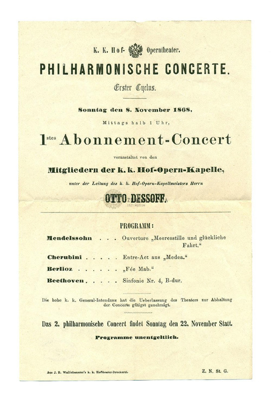 Műsor: Mendelssohn, Cherubini, Berlioz és Beethoven művei. (Közreműködnek a K.K. Hof-Opern-Kapelle tagjai, vez. Otto Dessoff).