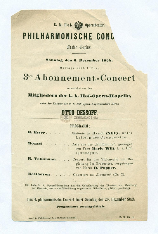 Műsor: Esser, Mozart, Volkmann és Beethoven művei. (Közreműködnek a K.K. Hof-Opern-Kapelle tagjai, vez. Otto Dessoff).