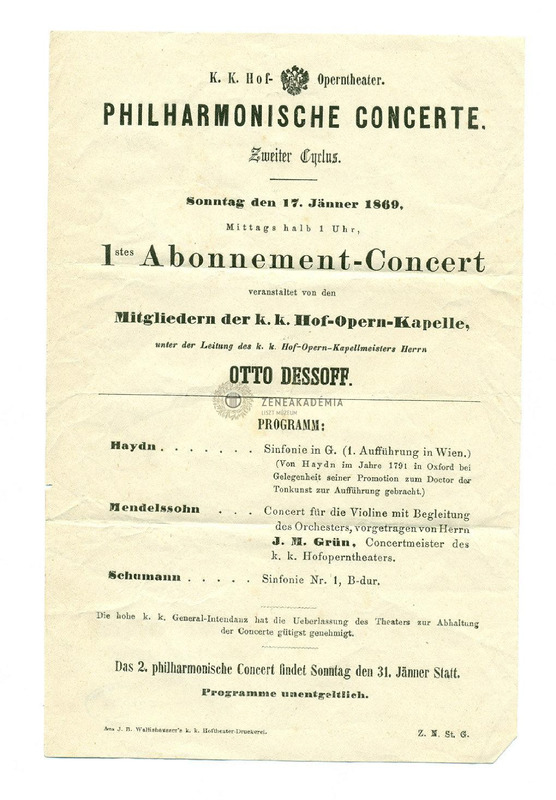 Műsor: Haydn, Mendelssohn és Schumann művei. (Közreműködnek a K.K. Hof-Opern-Kapelle tagjai, vez. Otto Dessoff).